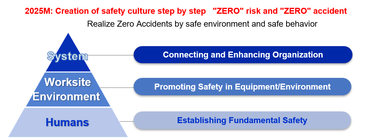 With “Safety is our top priority” as the foundation of our business, the SWS Group strives to secure the health and safety of its workers with a spirit of respect and rigor that affords no opportunity for industrial accidents. We will strive to achieve zero accidents by following our Safety Activity Policy, shown below.